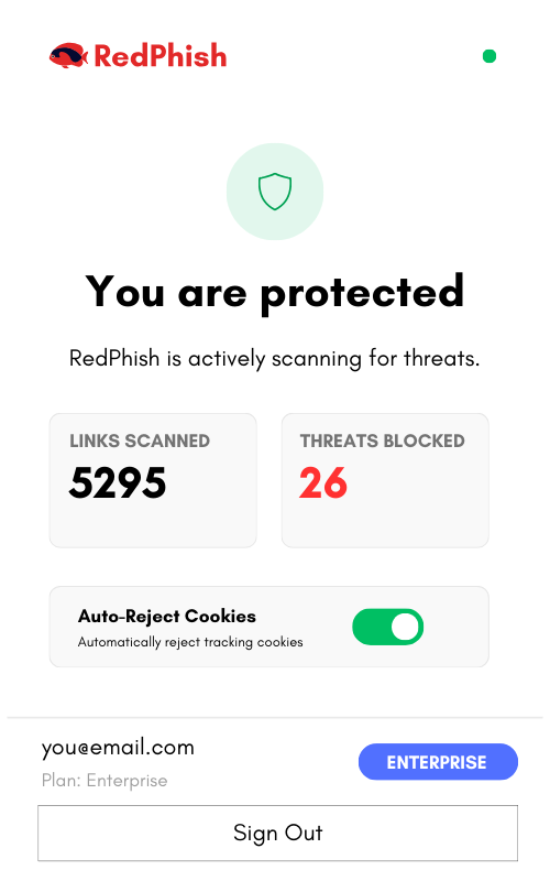 RedPhish handles cookie popups for you. No more clicking reject on every site you visit.